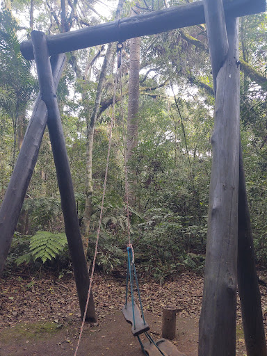 É bastante arborizado, com colméias de abelhas sem ferrão. Não é um parque como os demais, sendo bem diferenciado quanto aos brinquedos presentes. Tem brinquedos mais radicais que as crianças mais destemidas adoram, tirolesa a qual possui a maior fila, porém, demora pouco mais de 10 minutos para chegar a vez das crianças. Tem escada de corda para subir e tocar o gongo, um grande escorregador com três lances de descidas amortecidas por pequenas partes planas. A maioria dos brinquedos são para crianças de cinco a doze anos, mas há vários lugares que os adultos podem aproveitar. O cuidado com as crianças nos brinquedos é de responsabilidade dos seus acompanhantes. Não há grandes espaços abertos dentro do parque, sendo o percurso realizado em trilhas no meio das árvores, o que pode ser um pouco escorregadio dado a umidade presente. O parque não abre em dias de chuva e com as trilhas muito molhadas, é bom verificar antes se está aberto. Tem estacionamento e para fazer todo o percurso que é, digamos, circular, leva de trinta minutos a uma hora, dependendo da destreza das crianças e preparo dos...