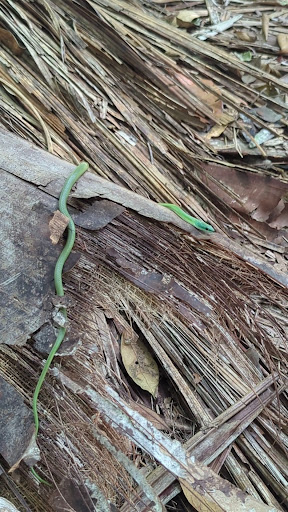 I saw channel-billed toucans, many lizards, and spider monkeys. I almost stepped on a snake who was crossing the paved water drains on the trail near the lake. When I stepped back to avoid it, it ran over the toes of my boots. I saw this snake as I was in the middle of reading a sign warning to stay on the trail because of venomous animals off trail, but this one was on the trail before chilling under the sign as if to be an example of what the sign says. I'm not sure if this one was venomous, but either way I bet that's why they require closed-toe shoes here! That snake would've slithered across all 10 of my toes if it weren't for my hiking boots.