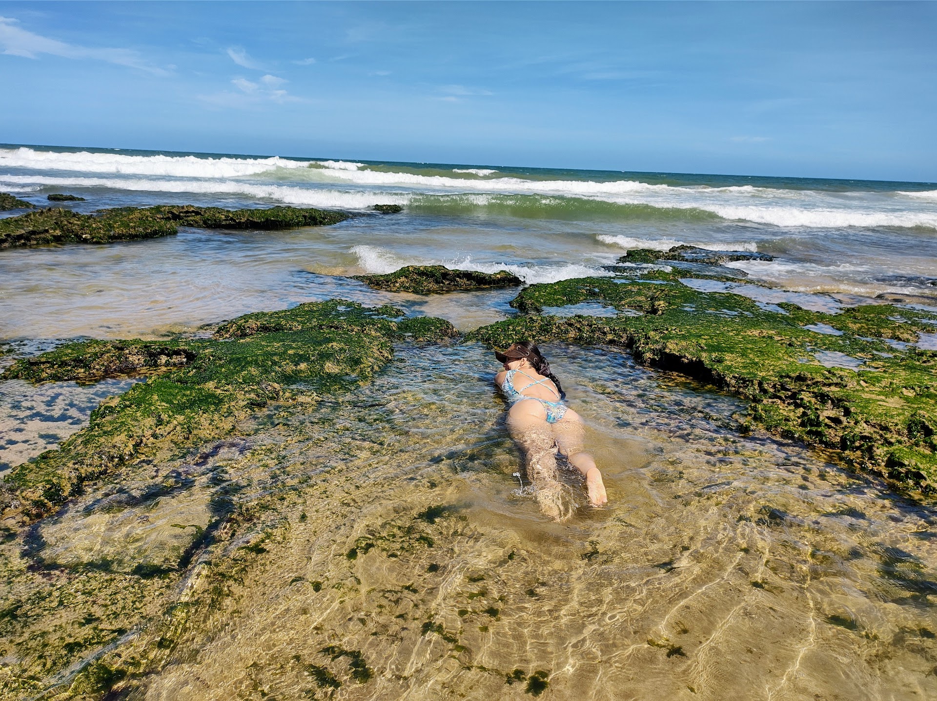 Read moreÉ uma praia bastante charmosa, mas nem todo mundo terá a mesma experiência. Ela é muito procurada na maré baixa, pois, devido à grande quantidade de recifes de coral, formam-se piscinas naturais muito bonitas, com bastante peixes pequenos, ótimos para agradar as crianças. Na maré alta recomendo não entrar na água, pois a probabilidade de se machucar nas pedras é muito grande, sem falar que o mar fica bastante agitado. É bom falar também que é uma praia social, que o pessoal vai muito se reunir com os amigos e...