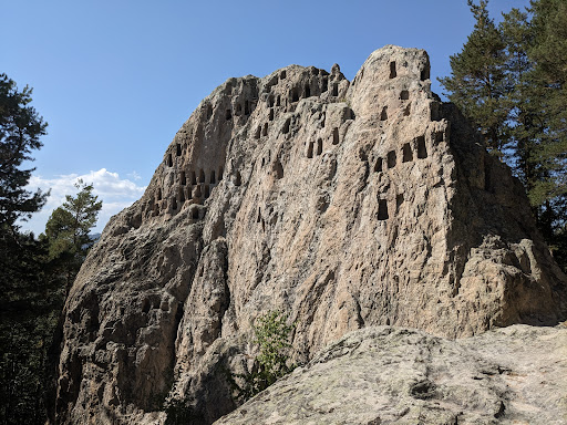 Read moreOne of the best examples of this Thracian phenomenon. The "trapezoid alcoves" are found all over the Rhodopes dug high in difficult to reach rocks. Despite numerous hypotheses and theories, there is no definite answer as to why or how the Thracian people made them. The Orlovi skali (Eagles' Rocks) site carries the larges number of recesses (97 left of the previously 100). You get there from the town of Ardino (turn right after the police station and follow the signs), or turn right about 2 km after you leave town. Either way, a newly asphalted road will take you to a small parking at the start of a trail. It takes about 15 min of moderate intensity walk...