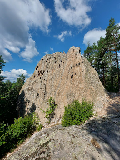 Read moreThe rock is dotted with niches, which at present must be about 96 in number. They are mainly south of the rock, but there are also western ones. The turnoff for the place is at the entrance of the town of Ardino from the side of the town of Kardjali. The road to the place is not long, but it is quite narrow and winding. After the entrance there are two paths. The one that is straight leads to the rock in about 5-8 minutes. The second path is about fifteen meters to the left after the entrance. Look for a sign on a tree. They call it "The path with verses". This trail is more circuitous, a little longer and a little steeper. It takes about 15-20 minutes to reach the rock. It takes so much time because there are verses written on tables in about 10-20 meters of the thickness and because of the stops to read the time is extended, but that's how one rests. GPS...