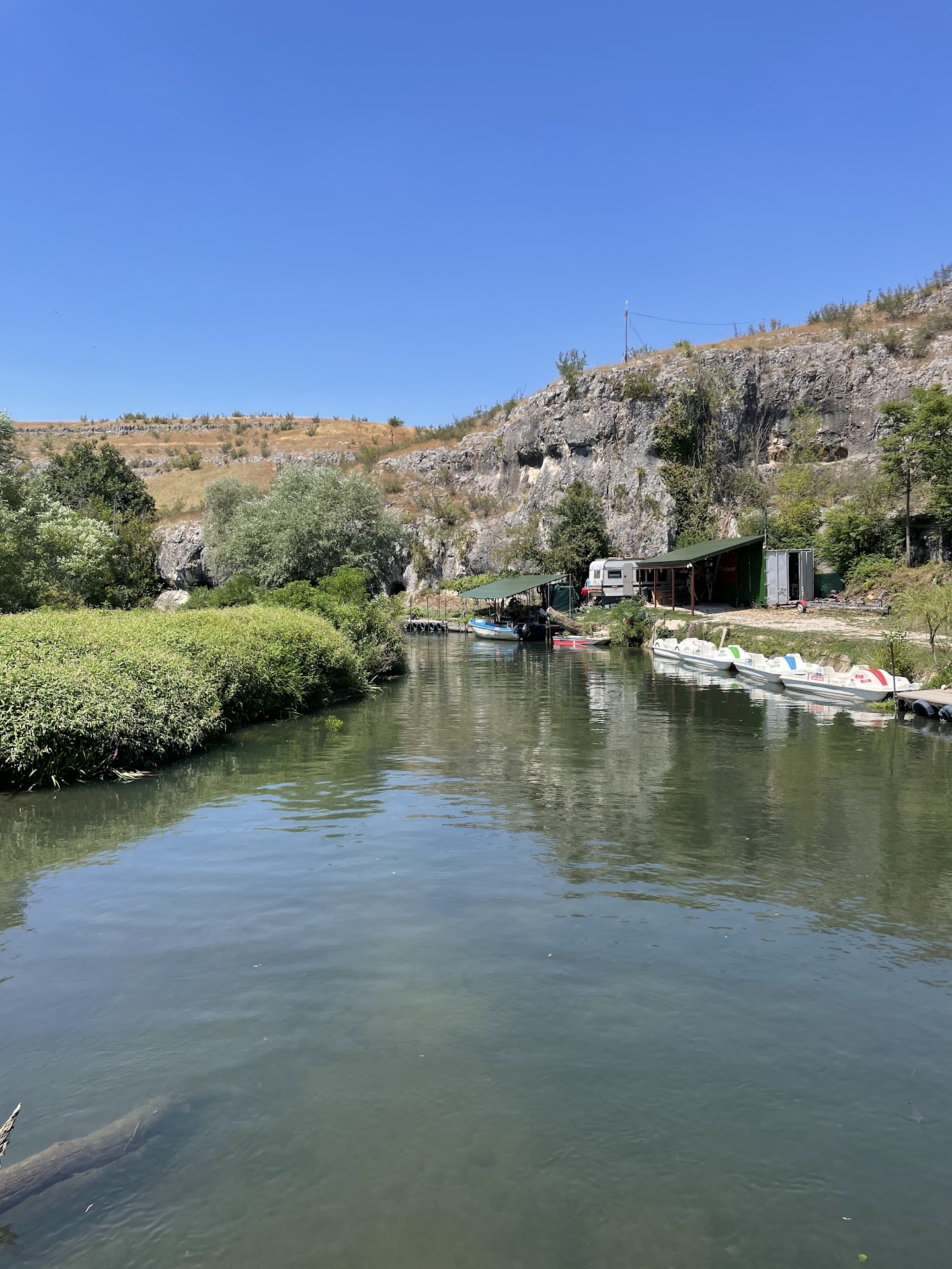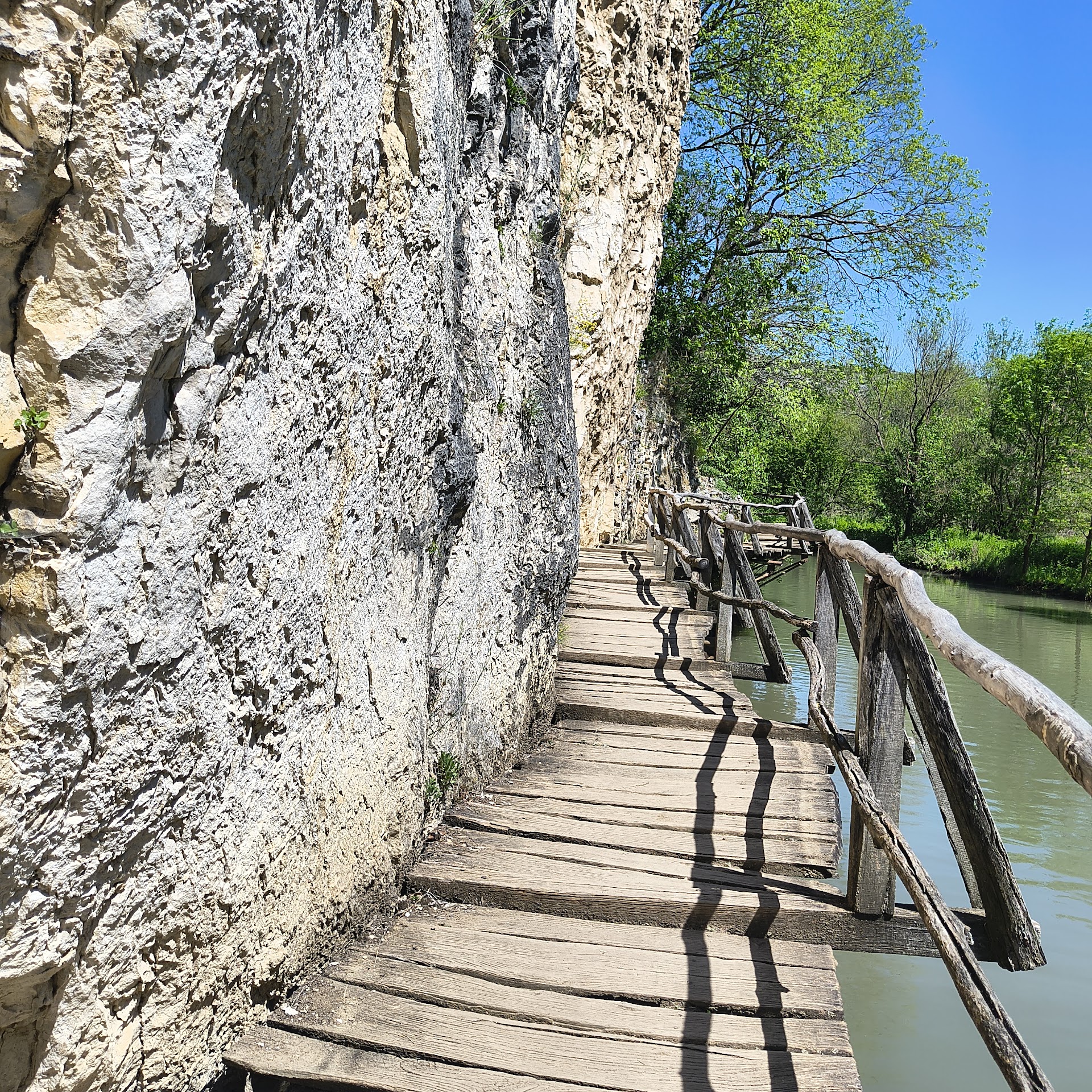 An ideal place for walks and relaxation. Almost at the entrance to the town of Lukovit, when coming from Sofia. Right next to the road and the start of the eco-trail there is a separate, rather large parking lot. The terrain is not steep and is comfortable even for children. It is recommended not to visit during rainy seasons because the terrain becomes slippery and in places the river can flood sections, although rarely. Near the start of the eco-trail, you can rent a boat or pedal boat. The one-way boat to "Dark Hole" cave is BGN 5. per person and it takes about 7 minutes to get there. I think the water wheel was BGN 20 per hour. Usually a person has decided to go for a walk and to the cave it is about 50 minutes of normal walking and it is about 1.9 km. There are secured wooden bridges built along the path and each of them has a name. At the end of the path there are coffee machines and other vending machines, also there is the entrance to the cave "Dark Hole", the rock corner "St. George" and a zoo corner with peacocks. The walk is wonderful both on foot and by boat. I recommend! GPS entrance eco trail -...