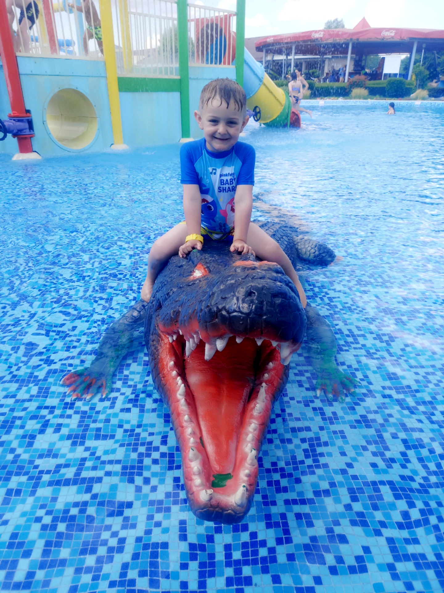 The lifeguards at the water park are very diligent and will prevent kids with a blue band (over 130cm) going on the splash park for the yellow band kids which I think is great as it protects the smaller kids from older kids messing around. Always plenty of Sunbeds at Aqua park.