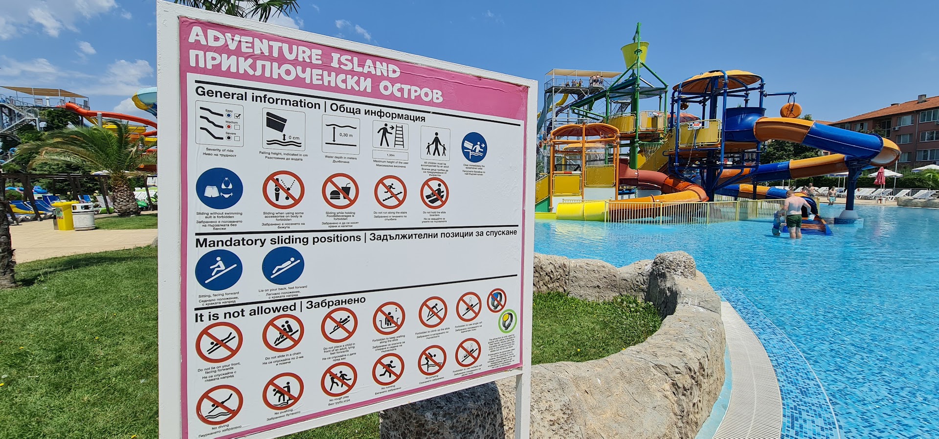 Read moreSecond and last visit!!! Last year great, this year a disaster. I'll start tickets, it doesn't matter if you buy online or on the spot, either way means waiting in a long line. You buy online, you are still standing in the queue to check the validity and issue the wristband. This is followed by a bag check, mainly so you don't bring your own drinks and food. (unfortunately not everyone has the same rules, if you know the local languages it's no problem to bring your own food or drink). Children under 130cm must be accompanied by their parents on attractions. If you have a smaller child and he is at the children's water playground, (Adventure Island), expect that you will only control him from a distance and if he is afraid, you will not help him on the attraction. Despite the fact that the sign clearly states that children must be accompanied by an adult. Once again, lifeguards strictly prohibit accompanying children to this attraction. (well, just like at the entrance, it is enough to use the eastern or local language during the confrontation and there is no problem) How would the park management react to the possible injury of a child at this attraction when the lifeguards prohibit parents from accompanying them to the attraction, that is the question. The young lifeguards probably have a competition in whistling and admonishing parents at the children's pool instead of directing traffic directly to the attraction where they do not want to let parents with their children. It would be better to have a lifeguard right at the attraction watching over the kids than him walking around playing Mitch Buchannon from the Coast Guard. But I appreciate that they uncompromisingly throw out teenagers who have forgotten that they are no longer children from Adventure Island. Food and drink sometimes 2x more expensive than in the surrounding area, card payment possible, but only if the bill is higher than 10LV. Service and food quality below average. If you want to go with small children, I do not recommend. If you are an adult or teenager without children, I...