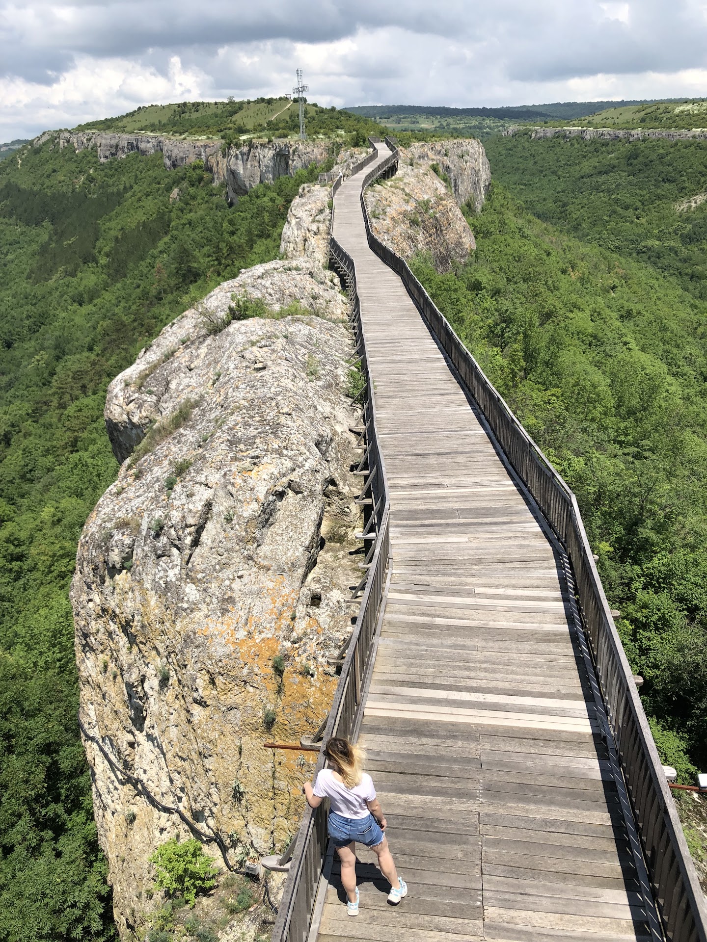 Nice view around the cliffs. Ovech Fortress or Provadiya Fortress is a stone fort situated near the town of Provadiya, Varna Region. It is located 54 km west of Varna, 56 km east of Shumen, 90 km south-west of Dobrich and about 411 km north-east of the capital Sofia city. Ovech is situated on a mountain plateau named "Kaleto". It is ship-shaped and its head points south. It is surrounded from each side by 20 m high rocks. A narrow isthmus connects it to another plateau - Tabiite /the fortifications/ located north of "Kaleto. fortress has three entrances: the eastern approach is preserved in its original version with stone stairs cut in the rock. It is convenient for visitors with private transport. the west entrance is accessible from the town via an original spiral staircase with 111 steps. the northern entrance is the main one. It has a 150 m long bridge in front of it that connects the fortress to the neighbouring plateau - Tabiite. When visiting the castle in stone fort you can also see the speaking well, 79 meters deep, the metropolitan church, the knight's prison, the tower with the devil path and the monk holes. The fort is open all-year-round. There is a guide provided by Provadiya Historical Museum. Information materials and souvenirs are sold...