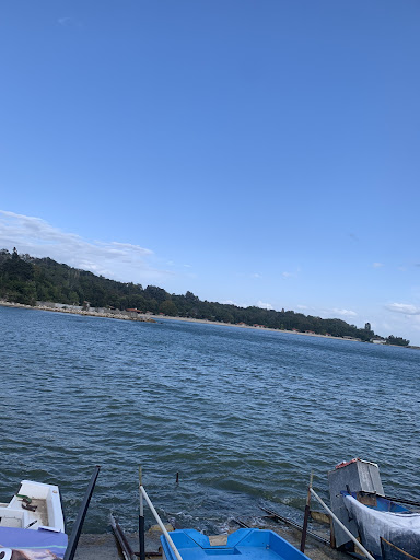 A nice public beach with a bar and fish restaurant. There are trees around which allow some shade. There is no public shower and no public water source. Also there is no life guard. You can park for free at the parking lot which can fit about 50 cars. This beach was decently populated even week...