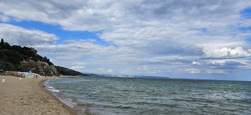one star is too much, Avoid this beach, especially the terrace!!! I had the ugliest experience since I know and I can say I've seen many beaches(nude) and countries till now. I stayed for a week in Laguna Camping nearby. I arrived on Sunday afternoon on this beach, where I tried to relax in the free corner of the north(nude section). The place seemed to me not very civilized and not very clean, but...anyway, tried to relax, nothing is perfect. I stayed for about 2 hours until the sun went down. After dressing up and stuff, decided to take away a beer to the box and go to take a walkon the pier to enjoy the last rays of the sun. I asked for a beer on the box and changed respectfully a few words with the man at the bar to whom I answered the question of where I am with no fear and openness. A surprise was the price he asked me on the beer box, 11 leva!!!, I asked once again because I thought it was expensive, anyway I took the beer and left, of course, no tax receipt. The next day, on Monday, I was in the same place between 11-13. I went into the water several times, read under my own umbrella and decided to ask the nearby store to make a small supply. On my way to the store, I decided to drink quickly a small cold beer and smoke a cigarette on the terrace. After a few seconds, another guy who was sitting close to me on the beach came also dressed and asked for a beer and sit at one table next to mine and smiled and said cheers. Well, after 1-2 minutes an older guy from the sunbeds that were very close came to me and in a very bad English with unfriendly manner pointed the finger in my face and told me that I have to go because this is a nude beach and I'm dressed... First I thought that he's drunk or he's joking, I said respectful that I'm also nudist, but now I came from the beach, I just want to leave and I will finish my beer and go, and besides that, there is also another person dressed at the table. The old guy went away, and I receive a confirmation from my beer Bulgarian colleague that was a hilarious happening... Well, in a few seconds three men came, the old guy, another old fart and a younger lifeguard came and started to push me and scream at me to go away, they asked me again where I am from, I was shocked, I tried to explain that I came from the beach and want to finish the beer and leave etc. but I did not have much luck, they were getting very aggressive towards me, started to push me, I fell on the plastic table, my glass of beer broke on the floor, the Bulgarian man next to me was asking them to stop because they are violent and they almost agressed him also, He left very fast while I was gathering my stuff. I was pushed again and hit on my arm, I have a big bruise now still... I was in a state of shock tried to ask for help from the bartender that gave me the beer a few minutes ago, was very relaxed looking like nothing is happening, I asked him to call the police because I'm a tourist and beeing agressed in their terrace and nothing. Then I decided that is time to get out from the bar because was not safe also, another lifeguard came and started to scream to pay for the broken glass 100 leva, I did not know if I had to laugh or run,I was surrounded, really, all was happening to fast and it was unbelievable...I wanted to call the police and they were saying "yes, yes, call the police, they will not help you..." I tried to escape but the first lifeguard was throwing sand on me and hit me, I fell again in the front of the bar, nobody wanted to defend me, was a nightmare. So I tried to escape by walking very fast on the beach but this crazy lifeguard was throwing sand on me and follow me another 50 m...