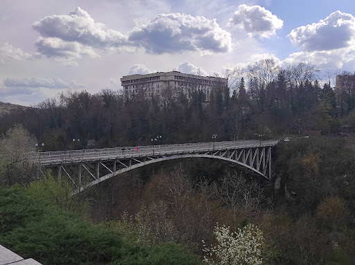 The Stambolov Bridge is a bridge in the town of Veliko Tarnovo, Bulgaria. Belgian, Italian, Bulgarian specialists and Bulgarian workers took part in the construction. On May 24, 1932, the legendary Bulgarian pilot Petko Popganchev passes by DAR 7 plane under the bridge without crashing.