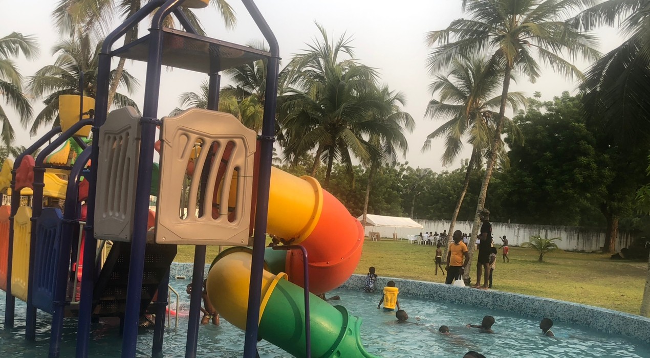 Read moreUn grand espace récréatif et sympathique bordé par la lagune. Les enfants seront heureux d'y être avec les différents jeux et piscines pour tous les âges. Il y a des toboggans, baby foot. Nous avons aimé le cadre et la nourriture. L'entrée est payante (3.000 fcfa) uniquement pour les enfants qui pourront profiter des jeux. Cadre idéal pour une sortie en famille, Les enfants pourront pour le goûter avoir des pop corn ou barbe à papa...