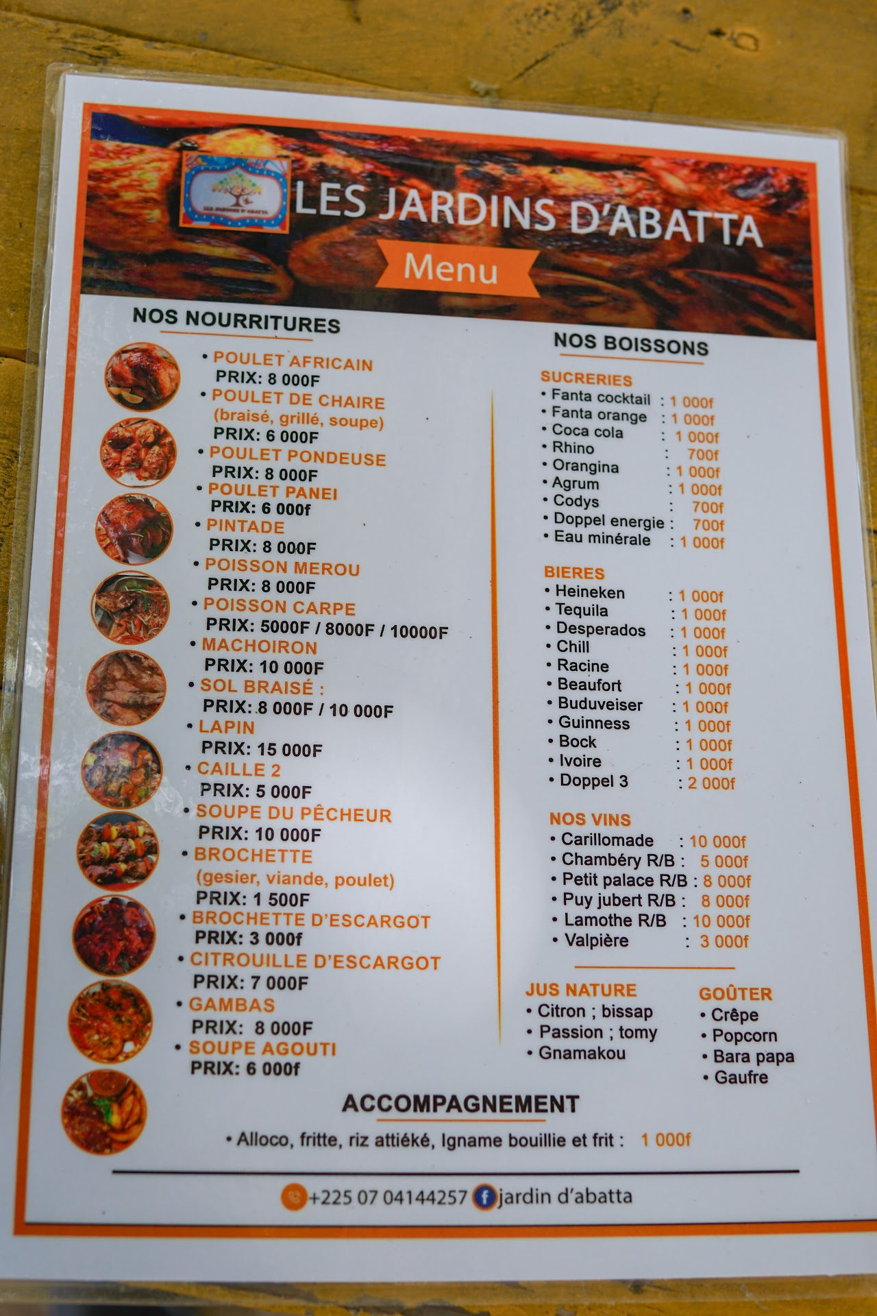 On y vend : La boisson (soda, eau minérale) La nourriture (bien faite) Du pop corn et de la barbe-à-papa Cependant, l'espace réservé à la nourriture n'est pas bien entretenu. Sous des arbres (c'est bien) mais pas propre Pas de personnel adéquat et encore... Pas en nombre. Pas de professionnalisme... (Beaucoup reste à faire sur ce volet.)