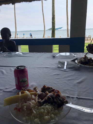 Le coin est situé tout au bout d'une piste non bitumée après avoir dépassé l'institut pasteur du km17. Nous sommes allés en couple et le cadre nous a beaucoup plu. On respire l'air doux en bordure de lagune en voyant l'île Boulay et la baie Audoin en face, à l'autre rive. La nourriture n'était pas mal, sans plus... L'établissement exige une conso de 15000 pour 2 personnes, mais ils peuvent être flexibles sur cet aspect, surtout si vous n'avez pas l'intention de vous baigner à la piscine comme c'était le cas pour nous. Un écriteau placé à l'entrée indiqué que l'endroit n'est pas un lieu de pique nique et que les boissons extérieures ne sont pas acceptées.