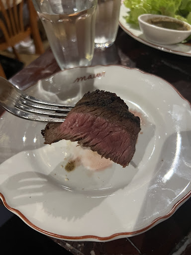 Read moreThis restaurant is in a small alley, I was lose at first. I love this alley it is full of restaurants and lively. There small design also good. And they have a free appetizer bread and butter and it is good! For food: there menu is small they have beef steak, chicken steak, and broccoli. I don’t have menu in the photo but you can check on there social media. There menu are price base on size. For the taste it think everything good it delicious beef is not chewy but soft and smell good. But the problem is no sauce (they have free sauce though but it is a salt pepper sauce) if you want a steak sauce you need to add 1.5$. They have a free refill water which is good. For beef, idk what type of beef they are using but it just like our khmer normal beef with a good technique of grilling and make it good. For 250g is 16$ no sauce I think it is a bit expensive. Now it is a time for broccoli, I mean I’m Asia so eat this in this price are so expensive. I don’t know what I think when I order it, and yes it is just a broccoli nothing special. I don’t like it. Don’t be like me it just tastes like grill broccoli of causes. Service: great they are fast and smile! Great overall. Atmosphere: I understand that it is small. So you have to be careful if you eat there the table is small. Everything tight. When I go there, There are alot of foreigners and they are enjoying their time there which is so loud! My ear almost buzz my ear. Overall I recommend...