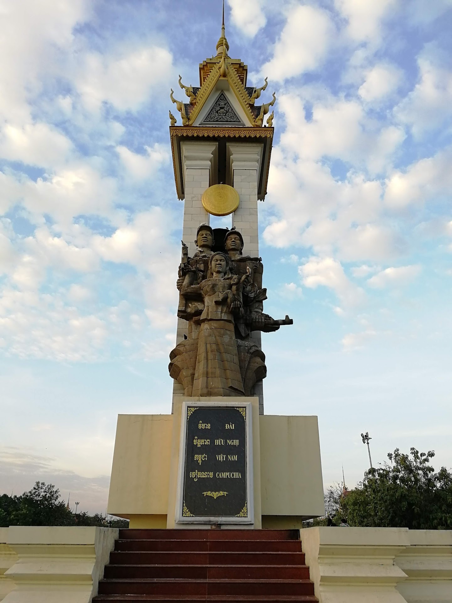 Go in daylight if you want pictures of the socialist realist statue Cambodian-Vietnamese Friendship Memorial dedicated to the liberation of Cambodia by Vietnamese forces in 1979. There is also a golden stupa memorial to 16 demonstrators killed by a hand grenade thrown in to a crowd in more recent years.
