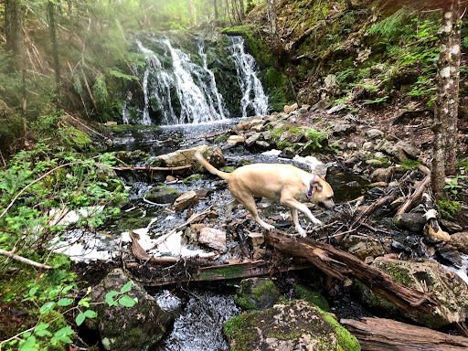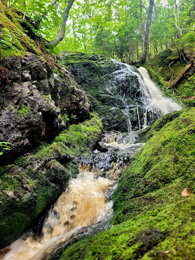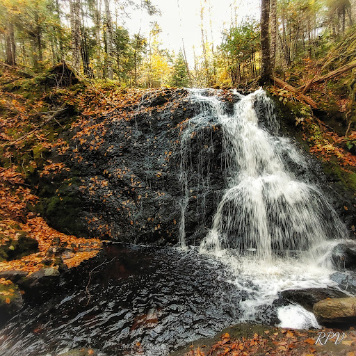 A short hike, about a 1/4 km., in from the road to the falls (actually a series of small water falls) along the a trail that is the old Devil’s Hill Road to Terra Nova. After visiting the falls it is worth a walk further to where the country open up as the views are wonderful, especially in the fall. The trail was in good walking condition in the fall of 2012 when we were last there.