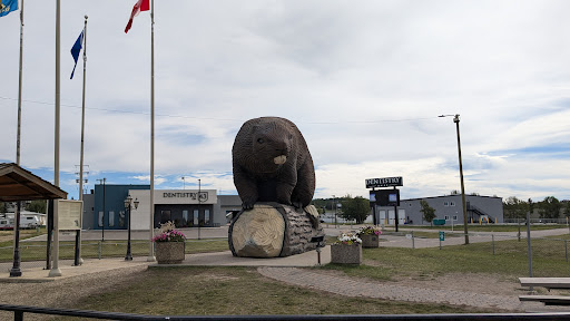 The funny part about it is the location of the dentist's office directly behind the beaver. I think those incisors can use...