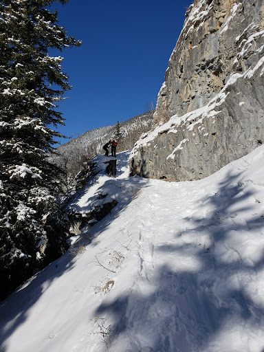 Read moreThe new trail is great! The elevation gain is more even throughout, and better drainage means much less mud. There's also clear trail signage along the path now, starting from the highway just east of the creek. The new summit flag feels a little anticlimactic though. As of May 18, you might still want poles or micro spikes for one short section (50-100m), but the rest of the trail was bare of snow except for the top. You can do this as an "out and back" or a loop, returning along the creek. Check All Trails or Strava for GPS maps. This trail is easy if you're used to scrambling up mountains, but may be hard if you're used to paved pathways. It's very well travelled, so one of the few where I'm not too worried if I forget my bear spray. But bring it...
