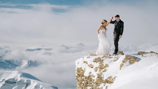 We loaded into the helicopter and WOW! Those views! Ralph Is a fantastic pilot! We took selfies flying, shot the bull and had so many laughs! We were literally on top of the World!! (Well, 10,000 feet!) Upon landing on the mountain, the snow was 2 feet deep! Ralph was more then happy to stomp out the paths first, so it was easier to hike in my wedding dress! He held flowers, coats and everything in-between! All morning Ralph ensured I was warm and he took great care of us! When we landed back at the heli pad, they had a warm fire going and brought us fresh Bread that Sue made! The bread was knotted, and it was meant to symbolize tying the Knot! It was the sweetest thing! Thank you Rockies Heli and Ralph for the most amazing start to our Wedding Day!! I can’t wait for the summer to go back...