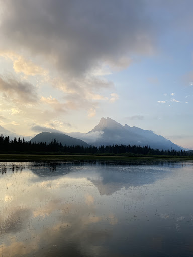 Read moreParked at the Fenland trailhead then walked to the bridge that connects to the Vermillion Lakes road. Walked along the road until we came across a small dock that many photographers use for reflective views of Mt Rundle. It was 6:30 AM and quite cloudy so we kept walking. Once we turned around and came back to the dock, it was mostly empty because of the cloud cover. We sat on the dock for 10 min and Mt Rundle quickly came into view. It was stunning to see and we had it mostly to ourselves. Arriving right at sunrise isn’t always necessary and being patient paid off. Area is buggy so wear repellent or cover up. The only wildlife we saw were water foul...