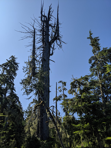 Read moreThis is a beautiful bog. It's littered with long-dead nurse trees covered in thick moss, salal and other bushes that make for a really interesting landscape. Old man's beard hangs from the last few leaves of senescent, skeletal trees throughout and all along the forest/bog interface. The system of easy trails leading to the boardwalk take you around the island for a nice...