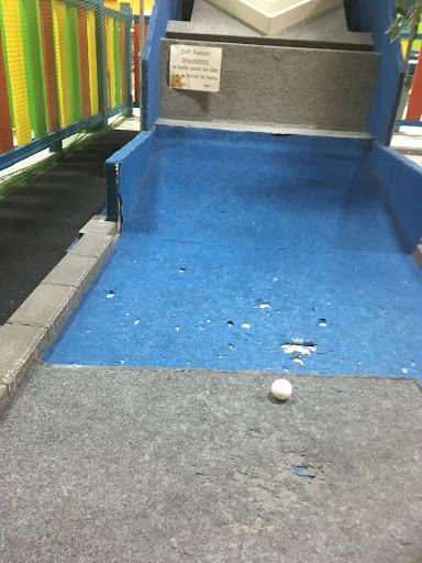 des "tapis d'entrée de maison" ont été placés aux départs des trous de miniputt.. mais c'est tout autant magané.. déplorable ! Les boules de mousse dans les jeux style "McDo" sont déchirées pour au moins le tiers de la quantité totale. Le jeu gonflable n'a pas de ballon pour jouer au basket.. les coins sont sales. L'espace photo au 2ème étage a perdu au moins le 2/3 des costumes d'il y a un an.. qu'est-ce qui se passe ? pour le prix, j'aurais pensé que ça aurait évolué... mais non.. ça a...