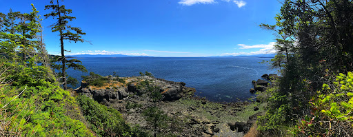 This is a lovely park for hiking with the treat of gorgeous views along the way. Only a very short drive beyond the ferry terminal to Hornby Island, there isn't a lot of parking. There is an extremely clean outhouse close to the entrance. The paths are well marked and periodically there are maps to show your location along the trails. The paths do involve climbing, some moderately steep descents, and several areas that are rocky or root covered however I have balance issues and I was able to enjoy the hike with walking sticks. My husband and the families we passed (including children) did not have any trouble with the paths. The view from the cliffs down to the lighthouse island, and at a different vantage point of the mainland and Texada Island, were...