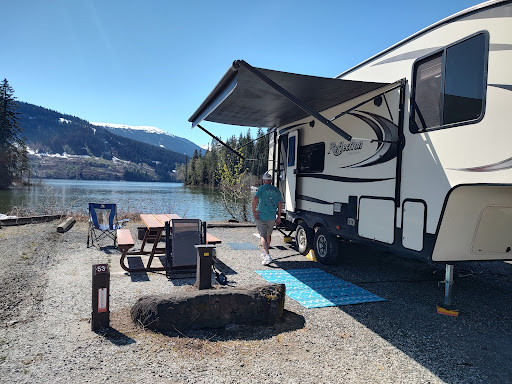 Read moreGreat campground. Lots of Big Rig sites available. A few sites with 30amp electric. All others are dry camping. No Dump Water spigot near entrance board. lots of bears in campground. You need bear spray. One morning a black bear was 2' from our door. No camp-store anymore. Mez Junction store is only for snacks and milk. Beautiful lake, bring canoe, kyacks boats or jet...