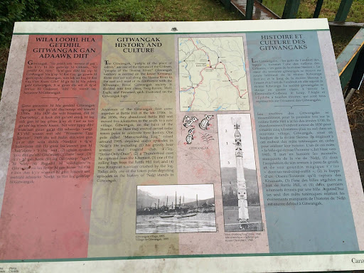 This is a historic site in the northwest well worth visiting. The interpretive panels are in 3 languages, Gitxsan, French and English. The hill top affords views of the river below and the Seven Sisters Mountains. This is an important part of history for Gitwangak and surrounding areas; peoples once living along the Grease Trail. All Canadians should have an awareness and understanding of First Nations history. It is maintained in partnership with local First Nations and Parks Canada from Haida Gwaii. Unfortunately due to travel to the site from Gwaii Haanas, maintenance is not always done in a...