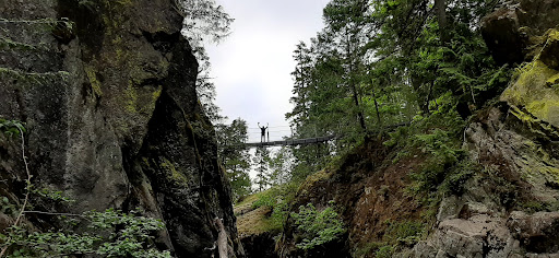 Haslam Suspension Bridge. Also know as Mindys Bridge. Thanks to Renie Bertrand and his friends for building this bridge.Renieās dog Mindy found this spot.Suspension bridges are always interesting places to explore around and take in the view. The Haslam Creek Suspension Bridge Trail is part of the Trans Canada Trail. The walk in to the bridge from the trail head is no more than 15 mins.The trail is reasonably flat and easy walking with some roots and rock to skip around. I didnāt go any farther than the bridge and hiked around below.An easy access to the river can be gained if you cross the bridge and go to the left.A well used path took me down to the river.At this time of year very little water and easy to get around. Iād like to come back here after a heavy rain fall because while I was below you can see Mother Nature is making some new sculptures of rocks and debris. I noticed other comments here complaining about directions. Check the rdn.bc.ca web site for maps and direction on this site. Play safe...