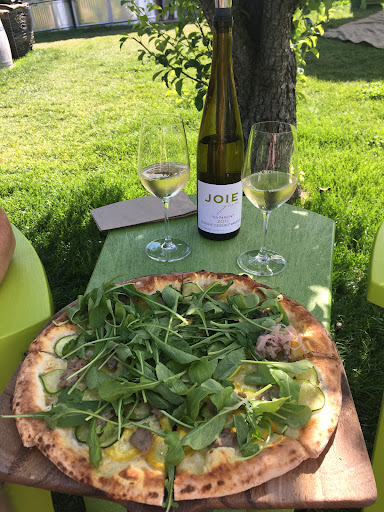 Great wines, excellent service, beautiful setting. We were there to celebrate a birthday with a group, we had a private tasting, they waived the 15 per person tasting fee as we bought several bottles of wine. Brian was our private tasting person, he was awesome and fun. Explained how many of the wines came to be and how they were designed to fit with food and mostly sold to restaurants. I have to agree with him on those points, NO BS there. They were organized at the tasting, nice glasses, it was a busy day with lots of people, all seemed happy The main reason we were going was for the catered lunch in the adjacent picnic area which is next to an orchard, this was done by Joy Road Catering. The catered lunch for $45 per person was good but,,, a few things. The cutlery was plastic fork and a wooden knife. Meaning more in the bin vs using proper cutlery would be nice and less waste. We sat around a round table that was leaning a bit too much, steep enough wine glasses would slide where it got wet or where wine spilled. the mains were served on a nice wood board however the chicken was a bit greasy and the grease flowed over the edge and down the table and onto one of the ladies pants, I got some on my pants too. Knowing it had juices flowing it should have been on a plate It did taste good and our server was super. No huge deal but think they might want to make the tables more level. No wine was included in the 45 buks which all of thought it was a bit overpriced, . had they served a glass of wine price would be ok, we all had a good time but wanted to point out possible improvements as its a nice place in a cool setting. We did not mention the grease to anyone . We would go back but not for the catered part. Now knowing they offer Pizza next time that is what we would eat Id given 5 stars if the grease had not got on...
