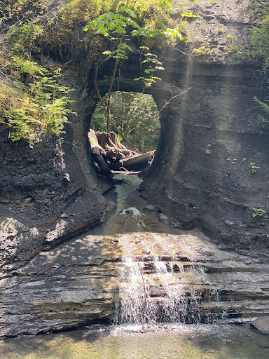 So, google said to park at the Coombs candy store. That is correct if there is no parking across on the shoulder cuz the pathway to the hole is across from the candy store. If you park on the should it is better. Once you get to the pathway, keep going to the left. You will make a few left turns in the path. And an open field. There are signs that are marked. (See pictures). Once you get to the bottom of the hill, there are two ways to go. The right will get to the front of the hole and the left will get you to the back. My pictures are left/back. I crossed the water over rocks to get a picture inside the hole but it is very hard in the spring time to do that maybe better in summer with aqua shoes. I got my hiker/socks all wet. If you go the right side/front, it was deeper waters with no rocks to walk on. We took our dog. Easy walk down and up from the hole but didn't not take the dog across to the hole but it might be easier in the summer when there is less water. We went in May and the trail was muddy. The gps helped but half way cut out.