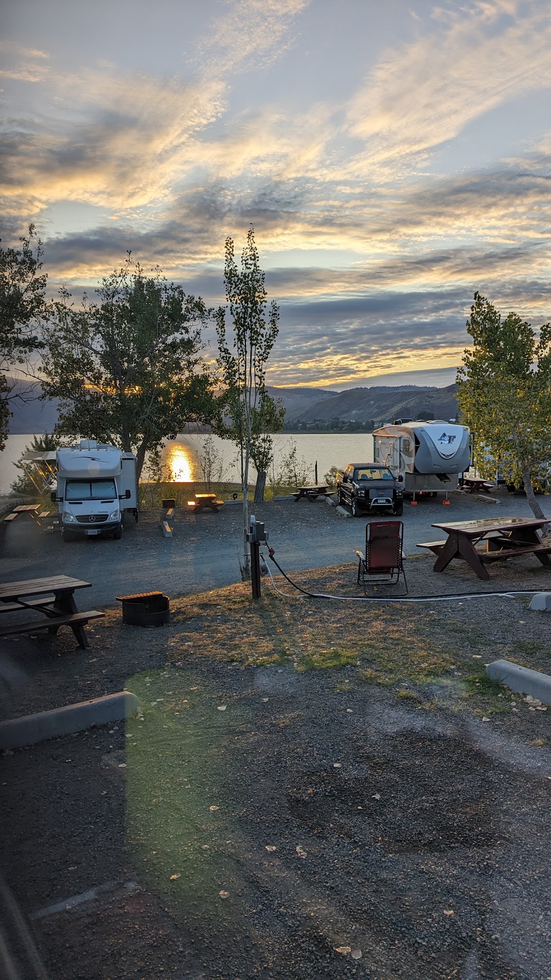 Read moreAs you arrive at 70 Mile House driving north on hwy 97 you will see a sign for Green Lake to the right. This is not the official turn off for the provincial park, which is another 2km north. However, it will get you there without any problem. The lake is 9km from the hwy but you will drive a few more km to get to the campground. Make sure you know which side of the lake your campground is on as the road does not circle the lake and you will have to double back if you pick the wrong side. We have camped at both campgrounds and enjoyed them both. Recently we camped at Sunset View which is 12km down the south/east side of the lake. Nice paved two-lane road in good condition. The campground is fairly level, no services, nice beach, nice playground, good shade and quiet. There is a boat launch just outside...