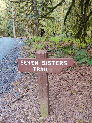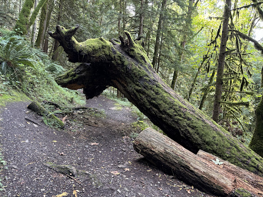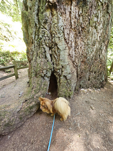 Short hike to a group of old-growth douglas fir trees. They are beautiful to just appreciate sheer size and age only 3/7 are left standing but what remains of the others can be seen as well.