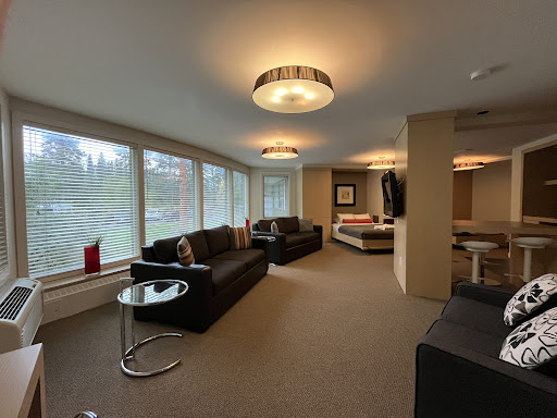 I absolutely adore this place! The location is fantastic. The main Banff street is right around the corner. Corner stores a few steps away, but the hotel is set in such a beautiful QUIET corner of the town next to the river. Set off to the back where theirs no real traffic to speak of. Huge walking trails and river right off the back step. Canoeing rentals on the river a few steps away. Absolutely wonderful views. I wish I had taken more photos of the room itself for this review. Rooms were super cozy and welcoming. The entire hotel has such a warm feeling. Beautiful art in the rooms. I know their are many more upscale hotels in Banff, but I find those feel cold and cookie cutter. If I spend money to stay in a hotel I want it to be memorable to that area. Not the same hotel you see everywhere. I would choose this hotel over those in Banff any day. I love the building layout and the room setup is fantastic. The bathroom off in it's own area and the sink in its own little nook has such character! It's so charming! The rooms have HUGE wall to wall windows! natural light is my favorite part, and with views like that why cover it up. Rooms were super clean and the beds...omg the beds! Super super comfortable! Everyone in our party commented how much we loved the beds. I loved the layout of the queen bed with the twin next to it. Extra blankets (the soft ones I LOVE) and fans provided in the rooms. Great internet connection. Adorable little table and chairs in the room and seating out on balcony and TVs and mini fridges in rooms and microwaves in common areas and coffee station in rooms and front lobby. Stay here and you'll want for nothing. Opening the balcony door let in a wonderful breeze off the water. The birds and sunrise and view! If you can, try and get the river facing room. The hotel has everything you could possibly need for your stay. The staff were super wonderful, honestly. Having never been to this area, I had to call a few times and clarify some things and confirm other things and each time the people I spoke to were fantastic. Friendly and approachable. I didn't feel rushed or like I was taking up their time. The woman checking us in was so helpful and nice, I wish I had her name. My son had to go down several times to ask a question and he said he really liked her and said she was "so nice!" And Isa! who I first spoke to on the phone and again at checkout; she really went above and beyond and was so kind to really make my trip happen by helping me with my booking issues was fantastic! š Even just passing staff in the hall they were smiling and saying hello. It really made my stay to be in such a positive environment. I will always recommend this place for a memorable stay! A fantastic night sleep in a wonderful safe area of town, with terrific staff! I'll...