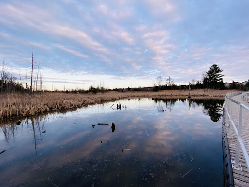 At this eco-park there are turtles, ducks, frogs, dragonflies, sometimes very small fish, and lots of bunnies!! The forest trails are good. There are noticeable large tree roots in the ground, but they’re not too bad. A nice place for a walk with the dog, not recommend to let them run off-leash. Deeper into the forest we discovered a small clearing with lots of lily pads! The bridge leading across the marsh is fairly clean. This is one of the best natural places in Barrie to watch sunsets, just make sure to...