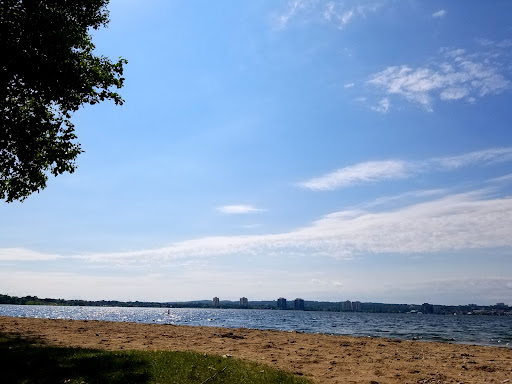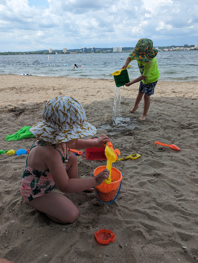 Great family park. The Beach is a couple hundred feet long, lots of great sand and plenty of shallow water for small kids with a drop off about twenty meters from shore with markers. There is a modern and large playground right next to the beach and parking is also just a few steps away. It has a huge grassy area and plenty of shade trees. The view of the boats and downtown Barrie are great. The geese can be messy though, which is my only complaint. There is a small store with ice cream and such just a one minute walk away. Or a fifteen minute walk to McDonald's, Dairy Queen, Pizza pizza, Giant tiger and a Dollar store to name just a few of the stores nearby. There is also a public washroom and change room building with running water. Great place to...