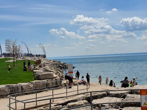 Read moreFor the most part this is a wheelchair accessible area. There is a ramp for the outdoor WC bathroom but no buttons to open the WC accessible door making it difficult getting in and out of there. The beach has a ramp to get down but the bollards are blocking the ramp for wheelchairs. Lots of pay parking lots around. Unfortunately lots of litter. Nice lake views and mutli use trails. Lots of of people out in the park at night too. Lots of night life options with nearby restaurants, bars and...