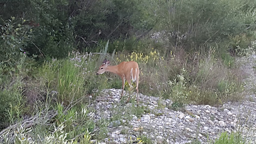 In addition to the deer there are a variety of bird species here. I've seen woodpeckers, sand pipers, pelicans, and others. The pelicans hang out on a gravel bar at the south end of the park. They're not always there and seem to be there more after 5 or 6 pm. I imagine they'll be migrating south a again in the...