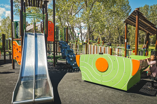 One of the biggest playgrounds in Calgary, this new accessible playground is for kids of all ages. There are lots of activity panels on the ground, a rolling slide, several bigger slides, swaying picnic swing, many musical features, climbers and ziplines (one has an accessible seat). There are a few free parking lots around, a seasonal washroom, picnic tables, and even an ice truck goes by in summer. Overall an amazing playground to...