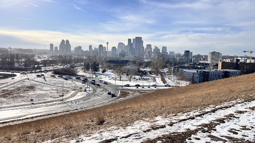 Tuesday was a great day. Still spring weather but it is so nice to get out. Stella and I decided to head over to Tom Campbells Hill Natural Park for our walk. I grew up in Calgary and, for most of my life, this hill was always a part of the zoo. The grass grazers were up here but only the adventurous would ever see them. As the zoo developed, the hill stopped being used by the zoo. Eventually, the city took over the hill but I still remember the Tom Campbell sign from which the park got its name. The city has encouraged a Rough Fescue grassland habitat. The park is 18 hectares complete with an off leash dog park Anyhow, enough history, Stella and I really enjoyed our visit. The views of the city were spectacular. You can see for miles. The views of the city were incredible. Plus you can see the Science Centre and up and down Deerfoot. And if you like to watch the planes fly into the airport, this is the park for you. I think I could read some of the numbers on the bellies of the planes. We accessed the park by going into the neighbourhood but it is easily accessible from the zoo parking lot. There is a paved path that will take you very comfortably to the top of the hill. This is where Stella had her pic taken. The top of the hill is nice and flat which is good for a game of fetch. There is a beautiful promenade lined by poplars leading to the main viewing point. The point has an interpretive exhibit explaining the history of the park and some ecological information. I found it very informative. Stella was unimpressed. There were not a lot of people there when we were but it was a steady flow of people and dogs. Most of the dogs were off leash but some, like Stella who isn't too good at recall yet at 5 months, were on a leash. Still we met some friendly folks and their fur babies. I must admit there was quite a bit of dog poop. Hopefully dog owners will get more responsible and make the park enjoyable and safe for everyone. Regardless, Stella and I enjoyed our visit to Tom Campbell Hill Natural Park. We will return...