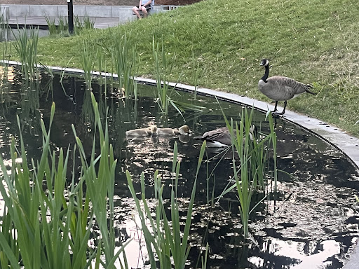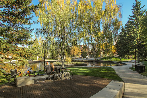 Read moreThe perfect park! The city planners got this one right! It is nestled just north of 102 Avenue and it is the perfect place to sit and enjoy the day. There are amble benches available that are large seats, there are walking paths that loop around the park and in the centre of it all is a man made pond that the city fills every year, and this year there are a few families of Canadian Geese and ducks that have decided to raise their young and you can see them waddling and swimming around the park. There is a fountain that feeds into the pond that gives off the perfect running water sounds that just makes the entire place feel serene. There is plenty of grassy knolls and trees and shrubs dotting the area that truly makes the park a special place to visit if you’re in the area. It is very common to see quite a few people there hanging out, reading, having lunch/coffee, at all hours of the day. The park is very close a couple coffee shops and bakeries so it is very convenient to grab a snack of some kind and stop in at the park to enjoy both the snack...