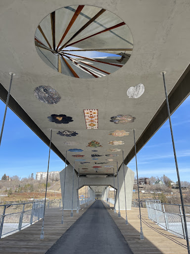 Amazing! I love to walk there again. At first we did not notice that there was a passage under the bridge because we were on the topview looking for the way going to the muttart conservatory 😅 until we went to the Chinese Garden. The pieces of art attached on the top were eye catching. The design of the bridge and where it was situated, were just perfect. People were biking around, walking and sitting on the bench. It's relaxing to sit on the bench overlooking the river and the city. I wonder how it looks...