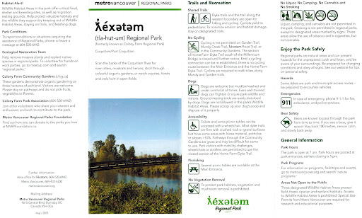 Read moreƛ̓éxətəm Regional Park is a great place for a relaxing walk or bike ride along the Coquitlam River. It's also perfect for dog lovers and families. Here's a quick rundown of what you can expect: Pros: Beautiful scenery, great for walking, running, cycling, and dog walking. Washrooms available at the main parking lot. Cons: Limited parking, especially on sunny days. Can be difficult to access by public transit. Shared paths with cyclists, so be aware of your surroundings.