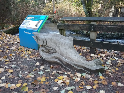 Witnessing three salmon swim upstream was the highlight of my visit. The trail area was well kept and inviting. I really enjoyed mingling with other visitors as we learned how we can all make Coquitlam's City life better. A five minute walk from SkyTrain makes this a great option for a nature walk in the future. Thank you, to all the organizers and trail stewards for making so many locations like this one...