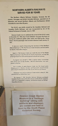 Read moreI came from Grande Prairie, AB and to while away the hours, I stopped by the Tourism Dawson Creek. Which houses a beautiful museum. It was fun. Small and cozy on two floors. They ask for donations which I think is okay by the way. The staff are friendly and lovely. Did not know about the Mile 0 Alaska Highway until I came here. Especially how the overland route to Alaska was constructed by the US Army Engineers in the spring of 1942 during World War 2 at a cost of $140 million. Dawson Creek is a city of history. The Tourism center has wheel chair accessibility and a...