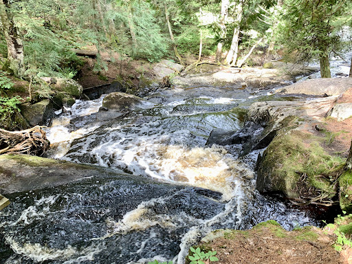 Read moreLovely spot beside the highway. We parked on the other side of the bridge which goes over the falls. There is a short root/pine needle and rocky hike down to side then you can access the rocks (carefully) for stunning close ups! There appears to be a trail which leads to snacks and kayak rental. We only went as far as the small beach with a view....