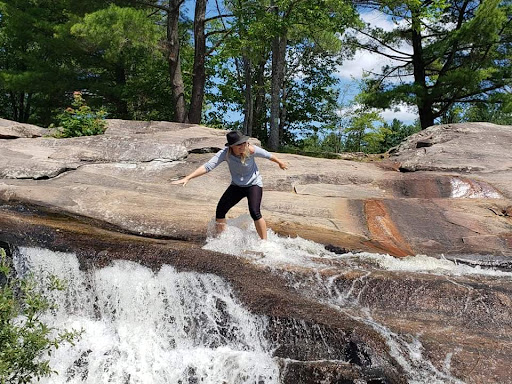 Natural water slides! Can easily stay a whole day here exploring the area and playing in the water. Loved checking out the General store and Consignment store nearby. The water was fast moving and dangerous today after heavy rains so we played on the side where the current is gentler. Excited to return one day and play in the water when it is safer for us. Adults should even wear a lifejacket on the big falls, but the side section felt safe for us today. There is a single outhouse. At least...