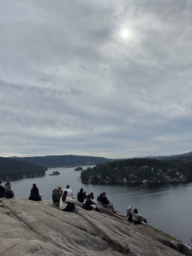 Once we reached Quarry Rock, the view was breathtaking! The panoramic scenery overlooking Deep Cove, Indian Arm, and the surrounding mountains was truly stunning. We spent about 15 minutes at the top, taking in the peaceful atmosphere before heading back down.