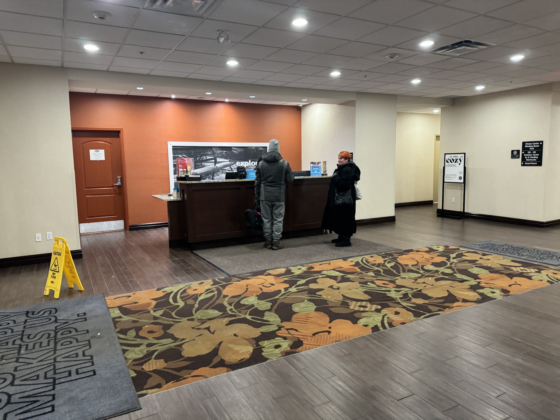 There was lots of small issues but the biggest was..On Saturday when I showered, the tub and the shower wall were COVERED in black, thick, straight hair. Clearly not mine as I have extreme curls and thinner light brown hair. Neither of us had showered yet so hadn't noticed the previous day. I went to the front desk to inform them that the house keeping is not doing a thorough job. They said that one of the staff would come in an clean the shower while we are in the room. I informed them that I had already showered so there was no point. They said that they will talk to management in the morning and reduce the price of our room as compensation. I thanked them and returned to my room for the night.