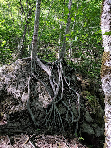 This provincial park trail is well maintained and has interpretive signs and a map at the trail head. There are picnic tables in the grassy clearing at the parking area for day-use. Pit toilets too.
