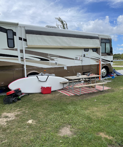 The sites offer electricity and water, but no sewage; however, there is a dumping station near the entrance/exit or you can pay a fee to have them come to your site to pump out your tanks.
